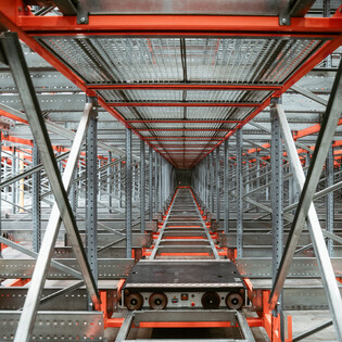 The Stow 2D pallet shuttles were installed to optimise space utilisation and improve inventory management. A vertical lift system was used to move pallets between different levels within the racking. The systems were integrated with a Warehouse Control System (WCS) called XY Logistics, which communicated with the customer's Warehouse Management System (WMS)